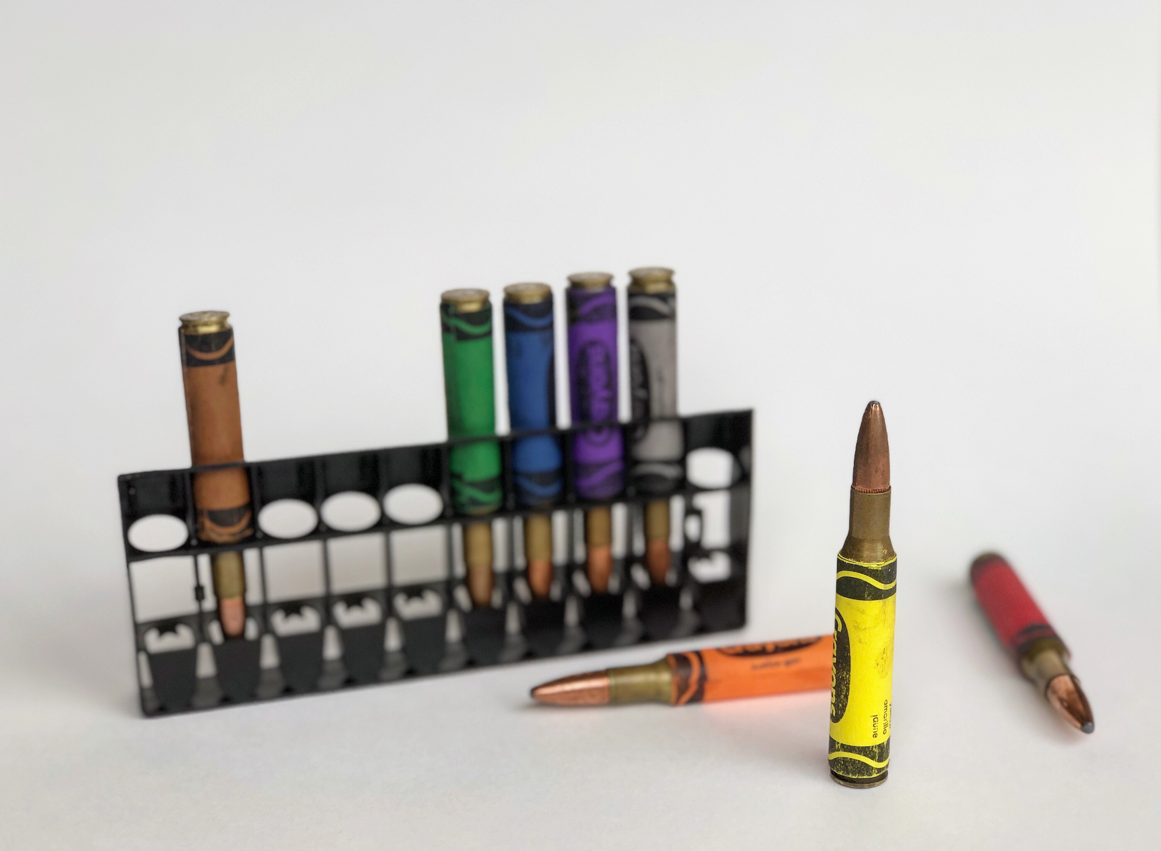8 components, site specific Photocopied archival paper, contact adhesive on reloaded non-live .30-06 cartridges with used cardboard and plastic Remington Springfield packaging 3.75 inches x 0.5 inch diameter each 4 inches x 5.75 inches x 0.625 inches (approx.) in package